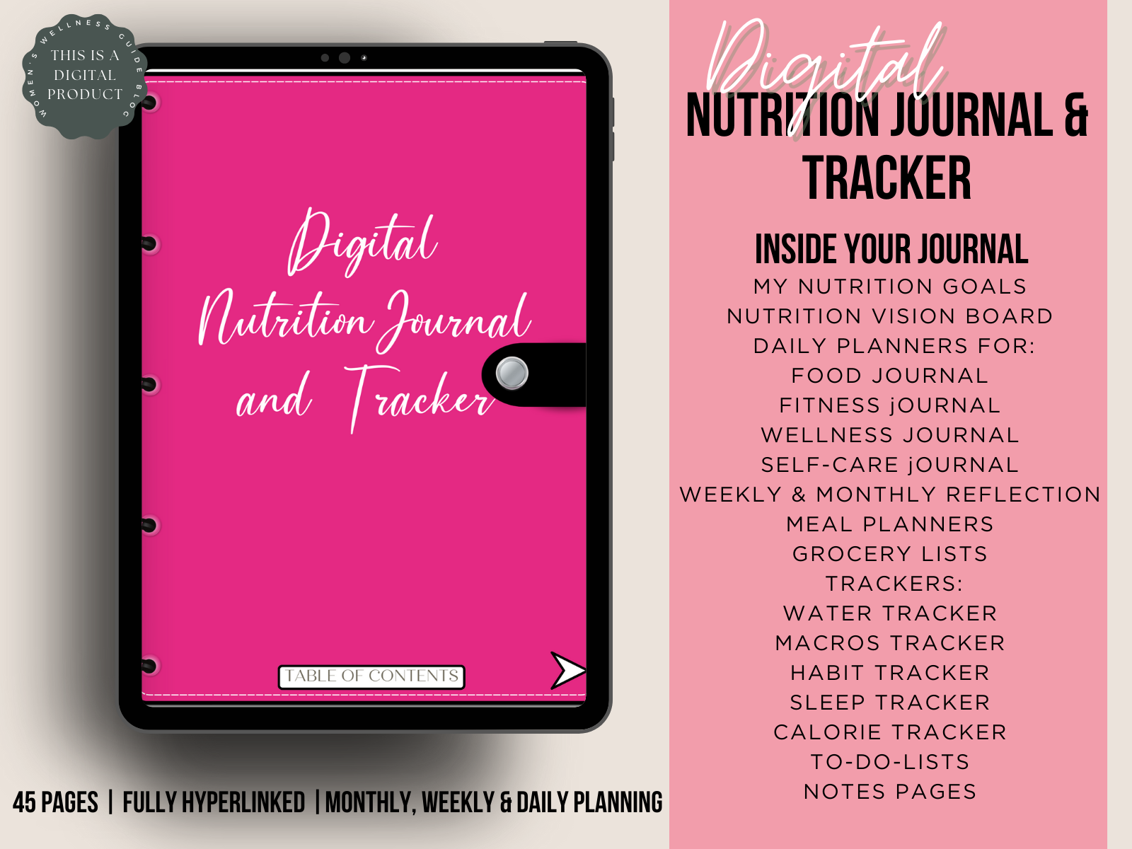 Elevate your health goals with our Digital Nutrition Journal & Tracker! This is a perfect companion to your printable planner! Seamlessly integrated into your digital life, this interactive tracker adds a tech-savvy twist to your wellness routine. Effortlessly log meals, monitor water intake, and set personalized goals at your fingertips. Embrace a holistic approach to health with this versatile digital tool. Upgrade today and unlock a world of convenience and wellness insights. Your journey to a vibrant and balanced life just got even more exciting!