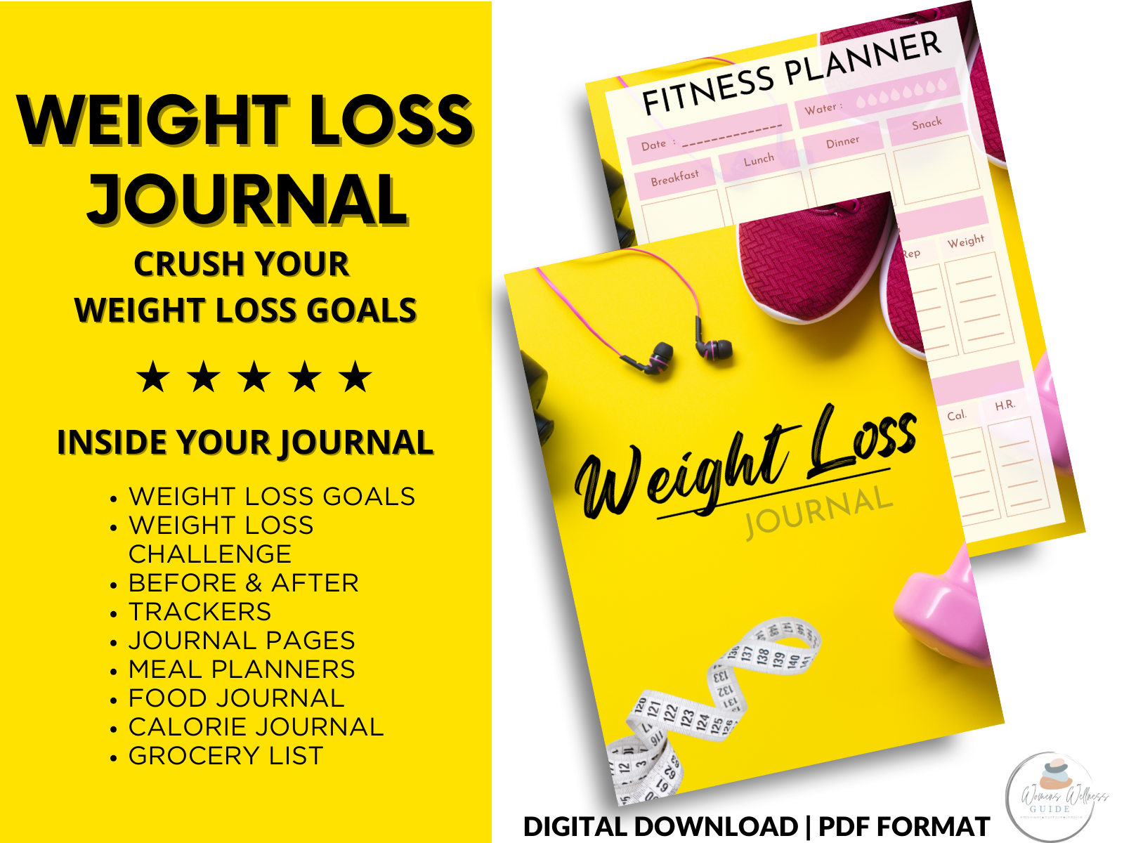 Presenting the Ultimate Weight-Loss Adventure Kit! Dive into a world of fitness with our printable Weight Loss Journal and Tracker Crush your goals, track your progress, and conquer each day like a weight-loss warrior! This isn't just a journal; it's your personal roadmap to success. From meal plans to workout logs, it's got everything you need to turn those fitness dreams into reality. And the best part? It's affordable & easy to use. Ready to unleash the fit and fabulous you? Snag your adventure kit now for just $14.00! Let the transformation begin!
