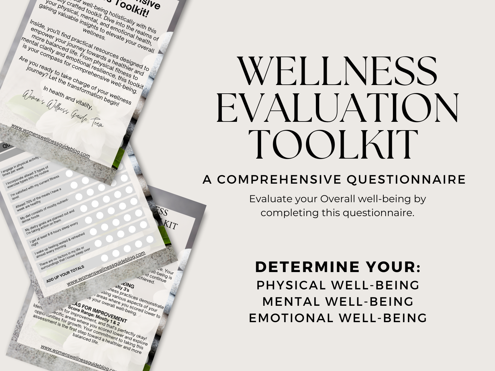 Embark on Your Wellness Journey with Our Wellness Evaluation Toolkit! Welcome to a transformative experience designed to illuminate the path to your optimal well-being! Our Wellness Evaluation Questionnaire is more than just a set of questions; it's your personalized guide to understanding, enhancing, and embracing a healthier lifestyle.