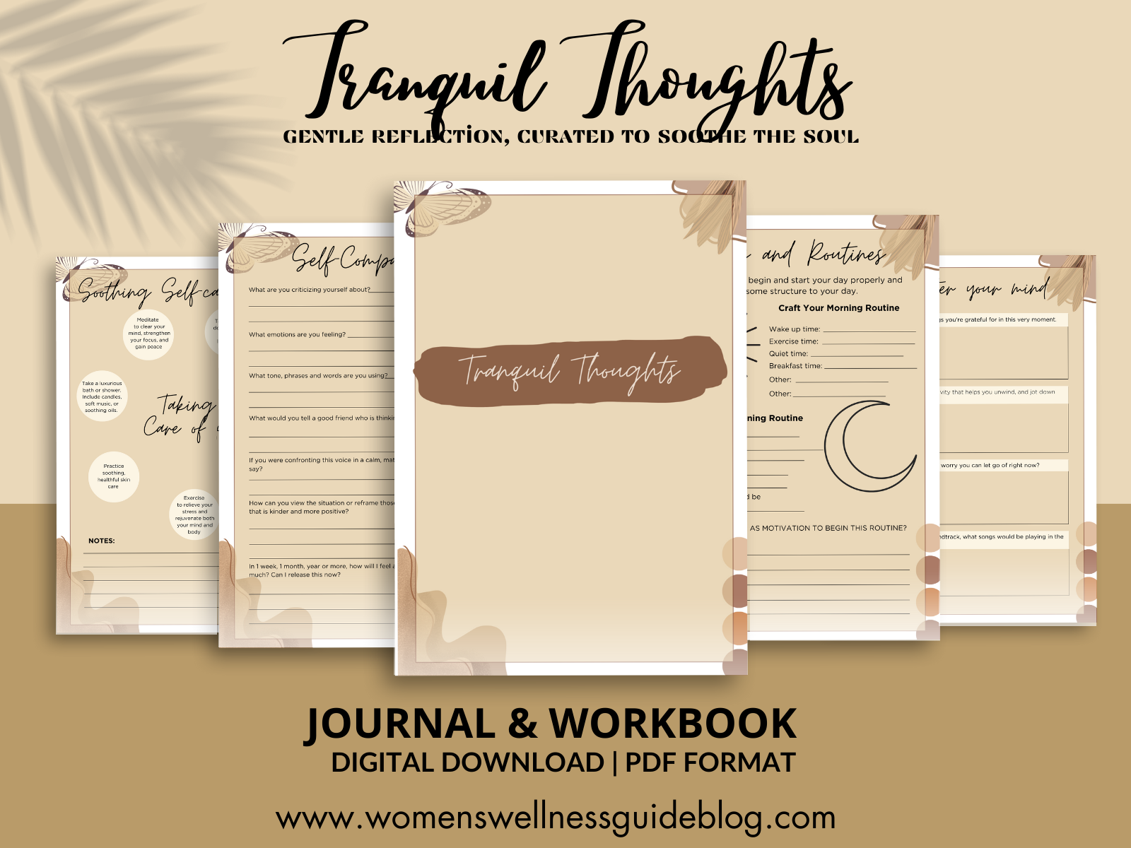 Step into serenity with our Tranquil Thoughts Workbook and Journal – your haven for inner peace. Immerse yourself in a journal filled with gentle reflection, curated to soothe the soul. This printable gem invites you to explore your thoughts, nurture mindfulness, and embrace tranquility. With soft hues and a design crafted for calm, it's the perfect companion for your introspective journey. Let your thoughts flow like a peaceful stream as you navigate this tranquil sanctuary. Priced at just $14.00, it's your ticket to a more serene you. Dive into tranquility – order your printable workbook now!